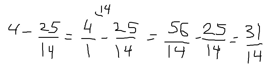 4-25/14=4*14/14-25/14=56/14-25/14=31/14