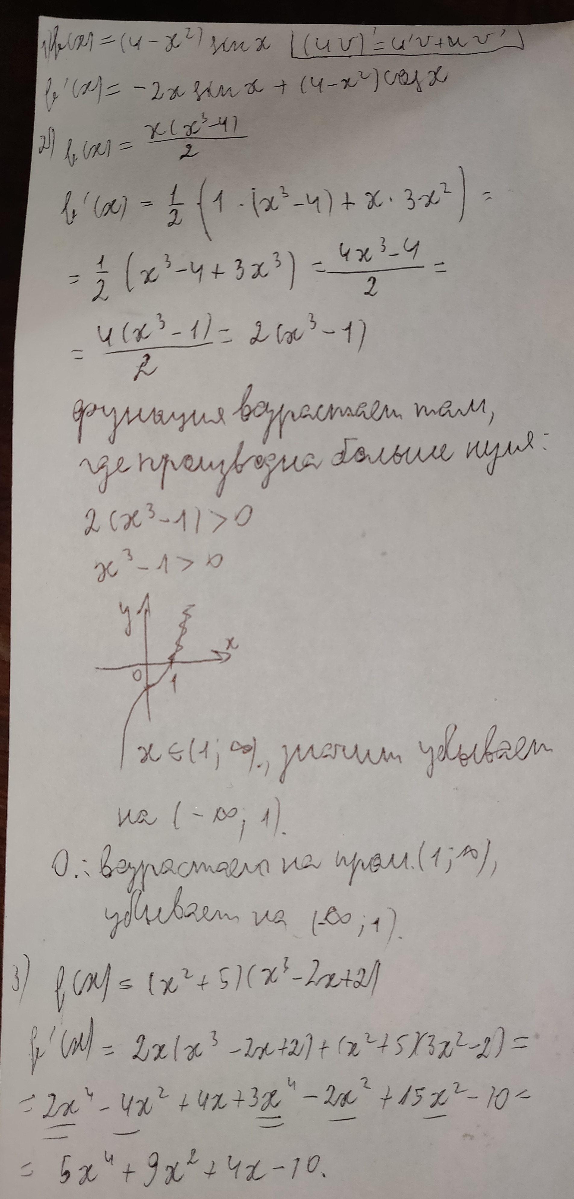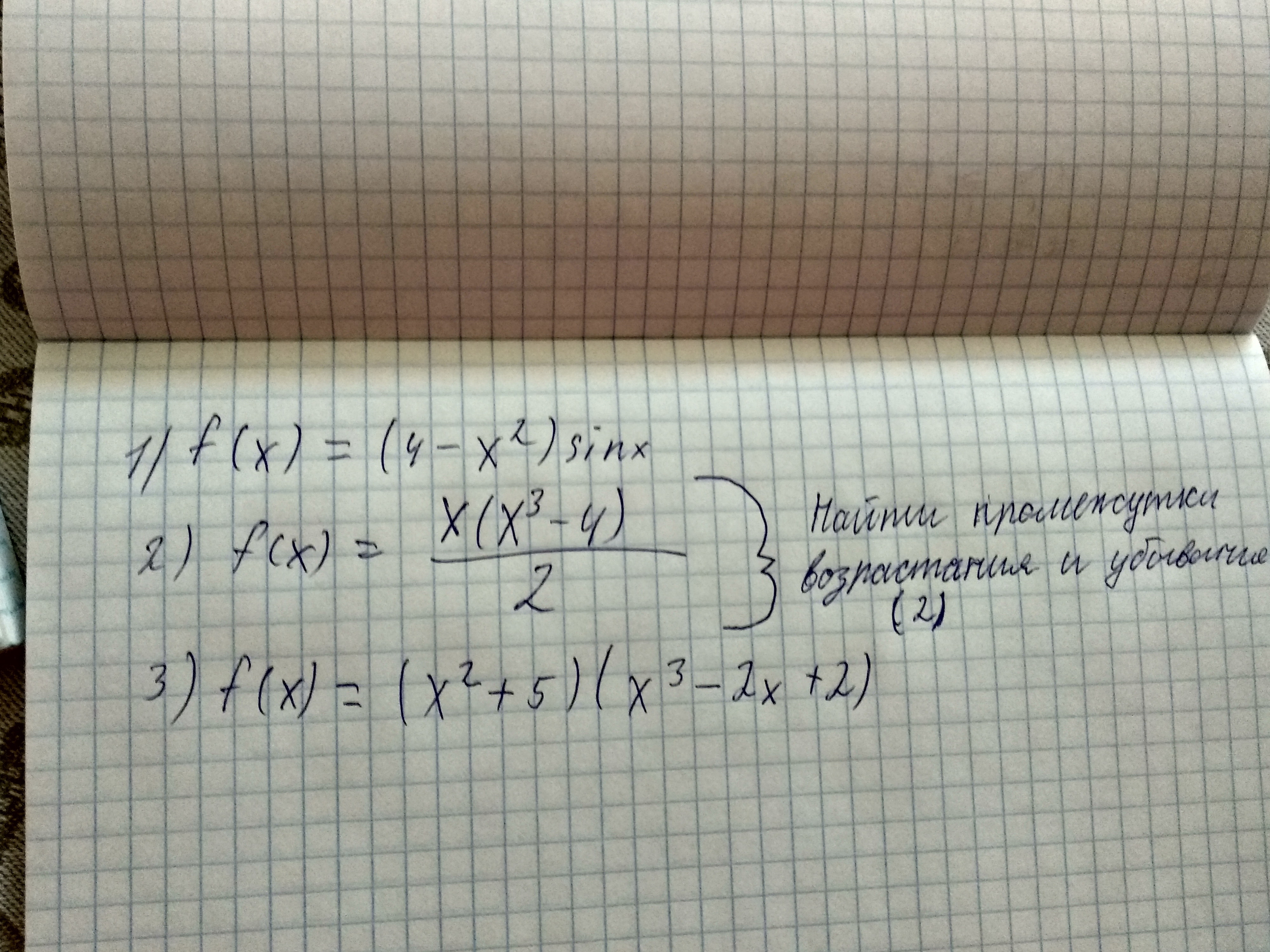 Помогите решить производные, а во втором примере найти возрастание и убывание . Срочно