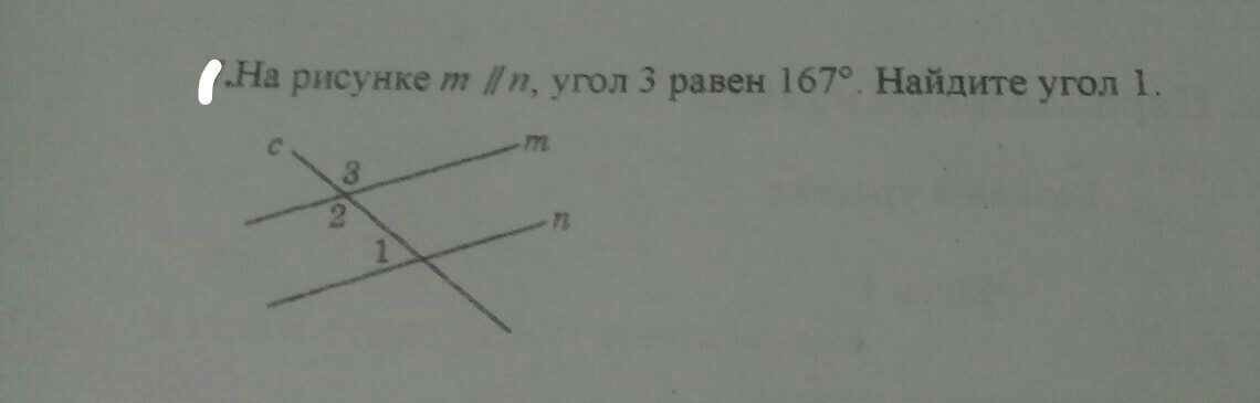 Угол 3 равен углу 2 так как они накрест лежещие. Угол 1 равен 180минус 167 13 градусов так как сумма углов прилежащих у одной стороне ровна 180 градусов