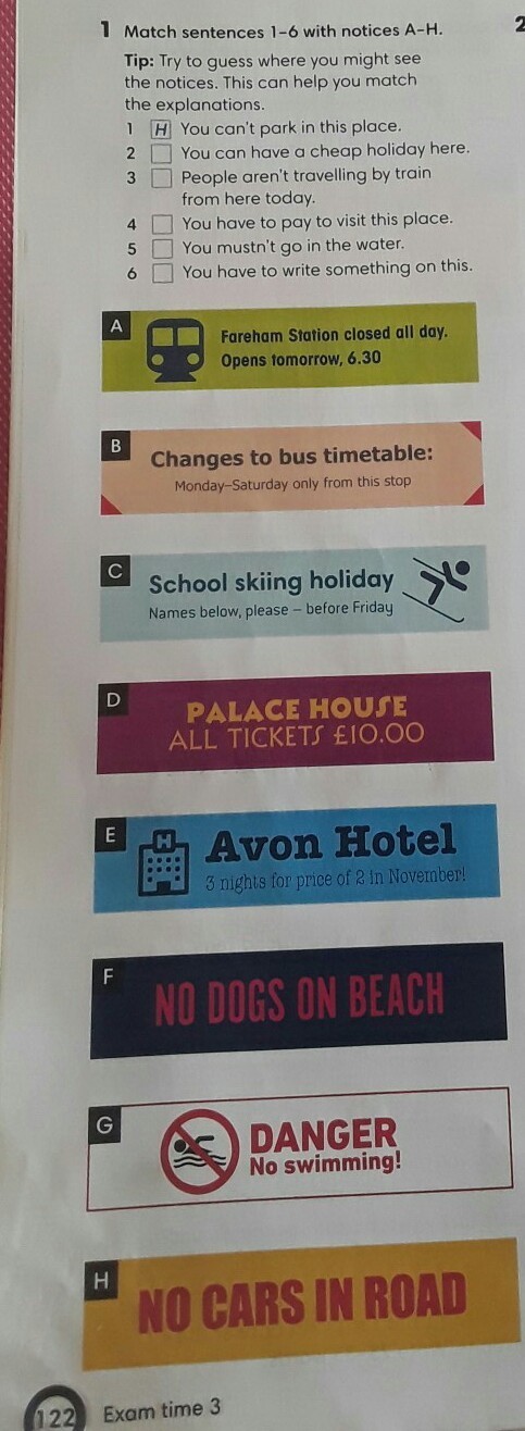 2E, 3A, 4D, 5G, 6B.