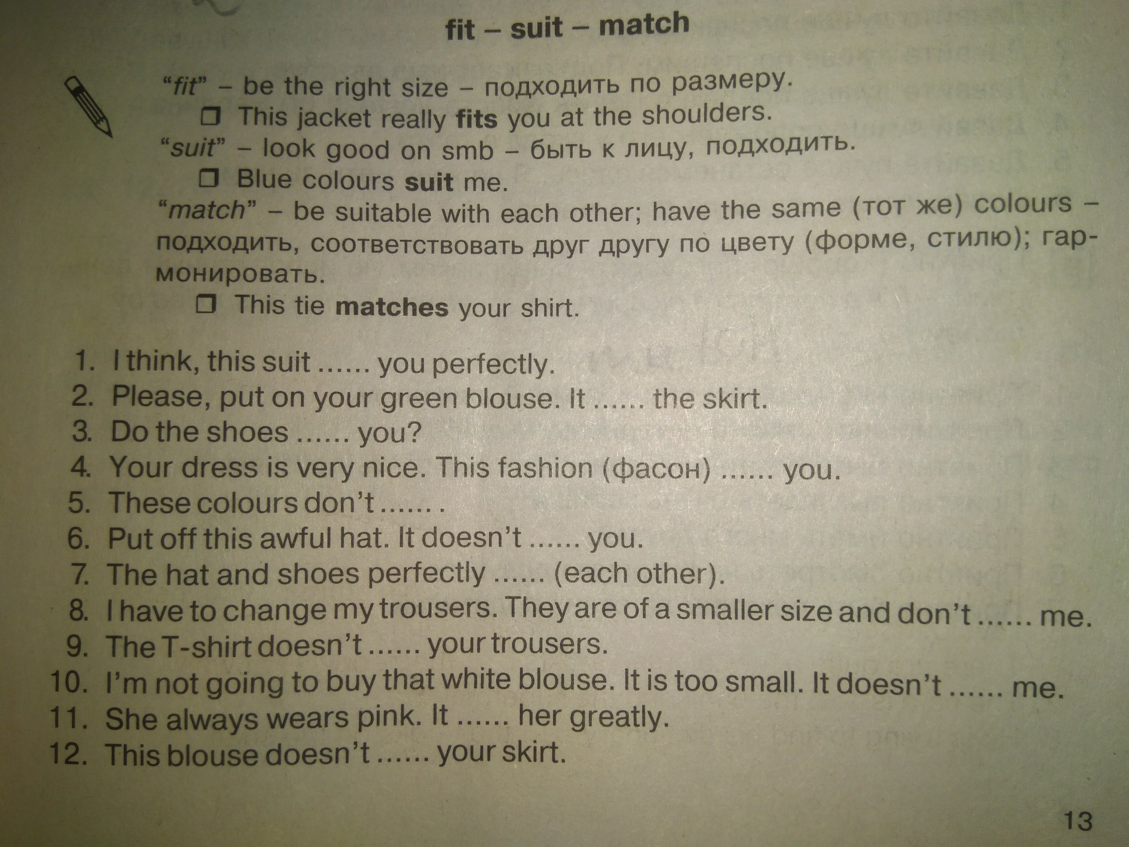 1. suits 2.matches 3.fit 4.suits 5.match 6.suits 7.match 8.fit 9.match 10.fit 11.suit 12match