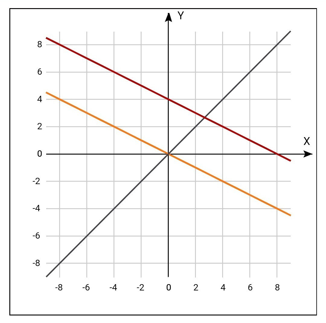 путем растяжения в 2 раза вдоль оси абсцисс и зеркального отражения относительно оси ординат ( у=-½х оранжевый график)