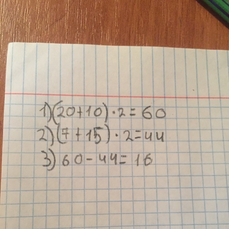 Извини, во втором стороны 7 и 15. Поэтому Периметр2=2*(7+15)=44. Разность 60-44=16м