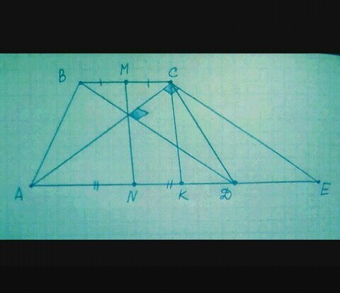 AK = AN + NK = (1/2) × AD + (1/2) × BC = (1/2) × ( ВС + AD )