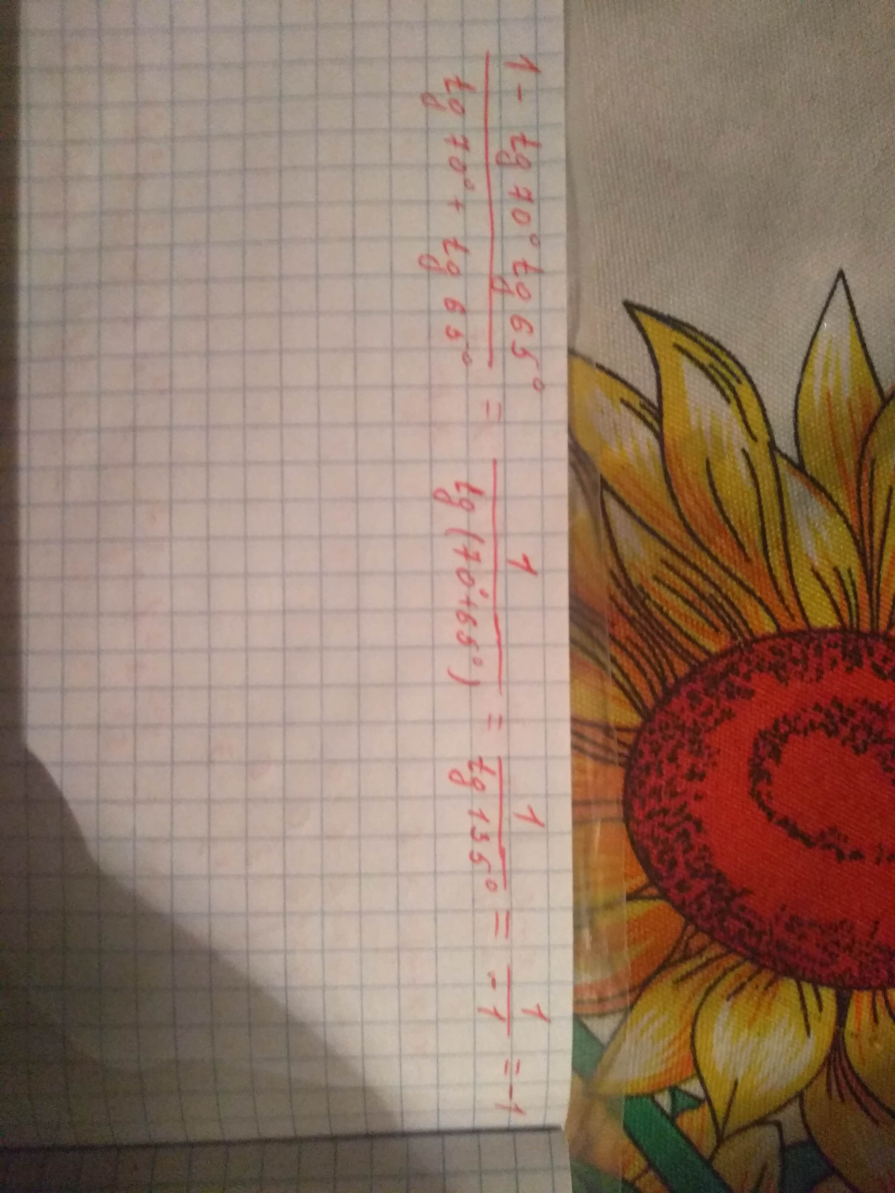. Сложив углы 70° и 65°, получим tg135°, а тангенс такого угла имеет значение -1. И, в таком случае получается ответ -1.