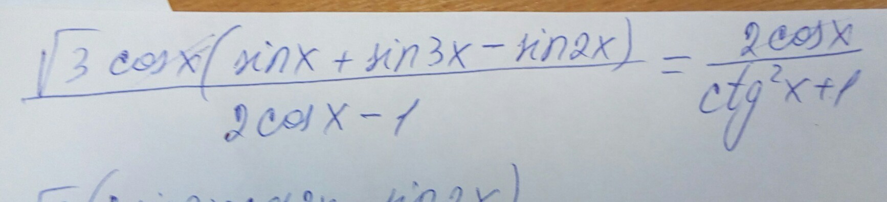 √3cosx(sin3x +sinx -sin2x) / (2cosx - 1) = 2cosx / (ctg²x +1) ;
