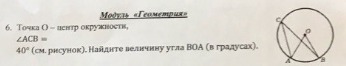 ∠BOA=2*40°=80° центральный угол, опирающийся на ту же дугу АВ.