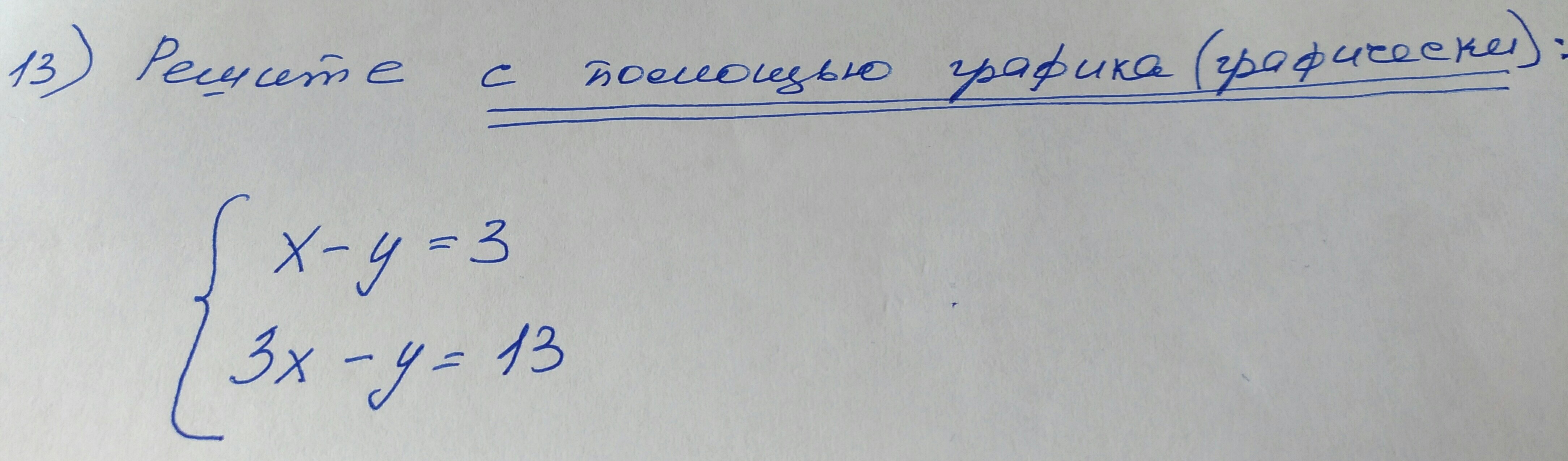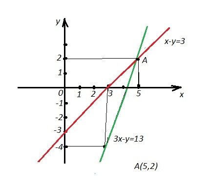 left { {{x-y=3} atop {3x-y=13}} right. ; left { {{x=5} atop {y=2}} right.