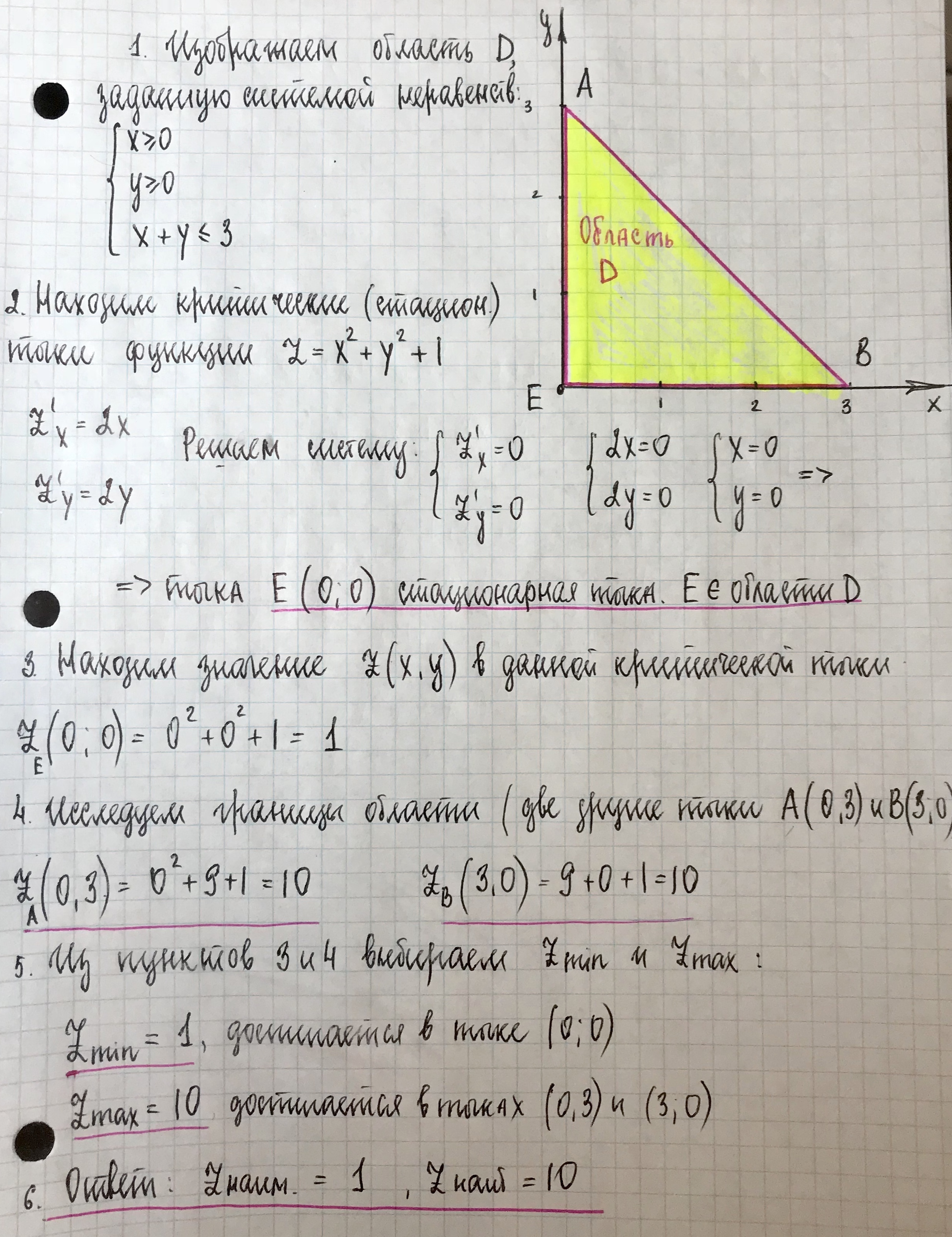 Найти наибольшее и наименьшее значения функции z = f(x,y) в
