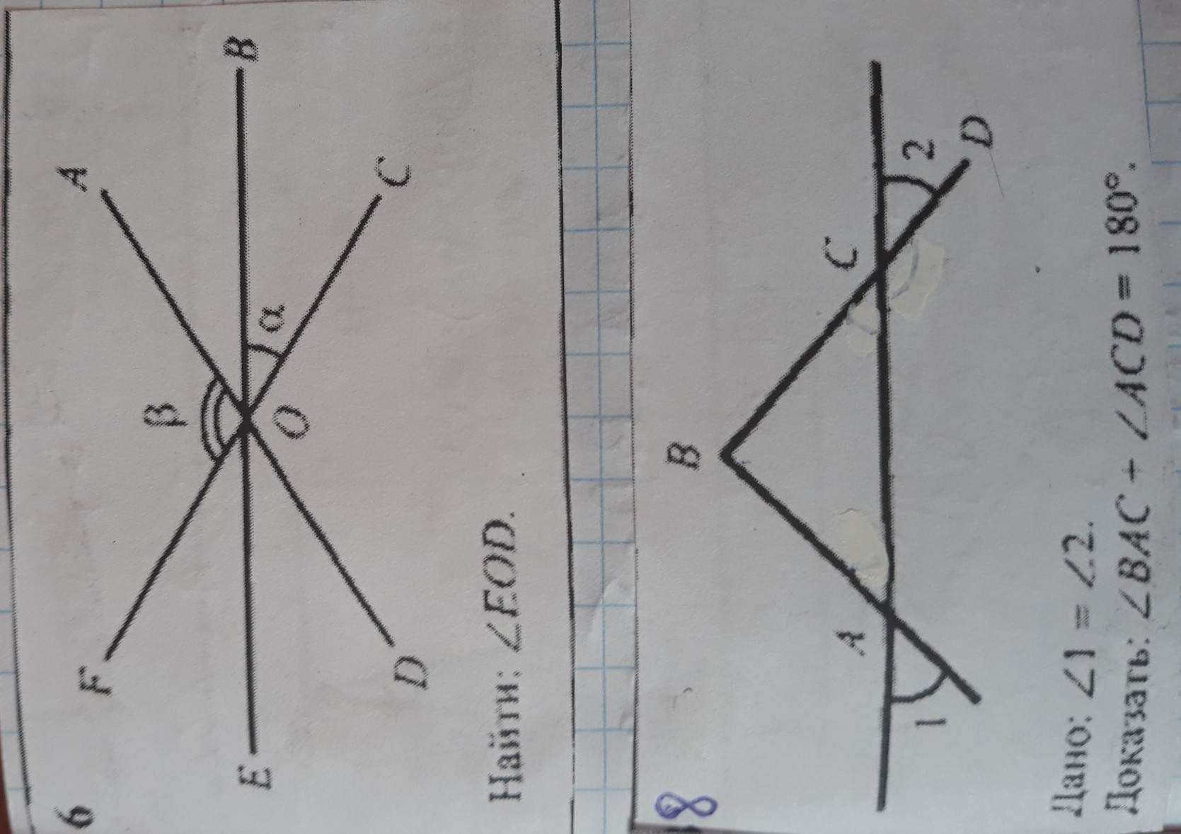 6. угол ЕОD=180-(DOC+COB), т.к ЕВ развернутый угол, то он раыен 180 градусов, а угол DOC=FOA вертикальный.