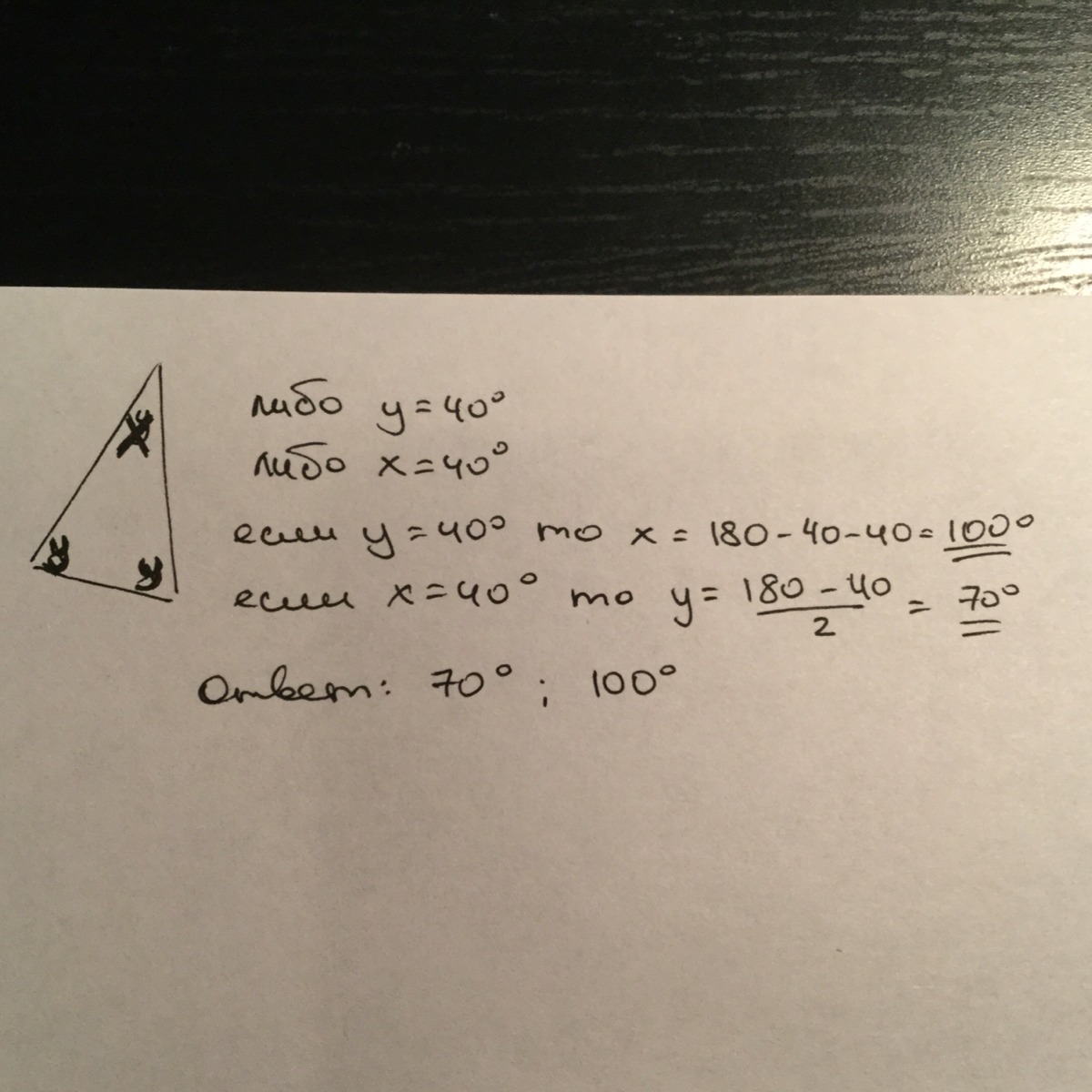 В равнобедренном треугольнике один из углов равен 40 градусов. Чему может быть равен наибольший угол в треугольнике? Нужны все правильные варианты ответов в порядке возрастания.