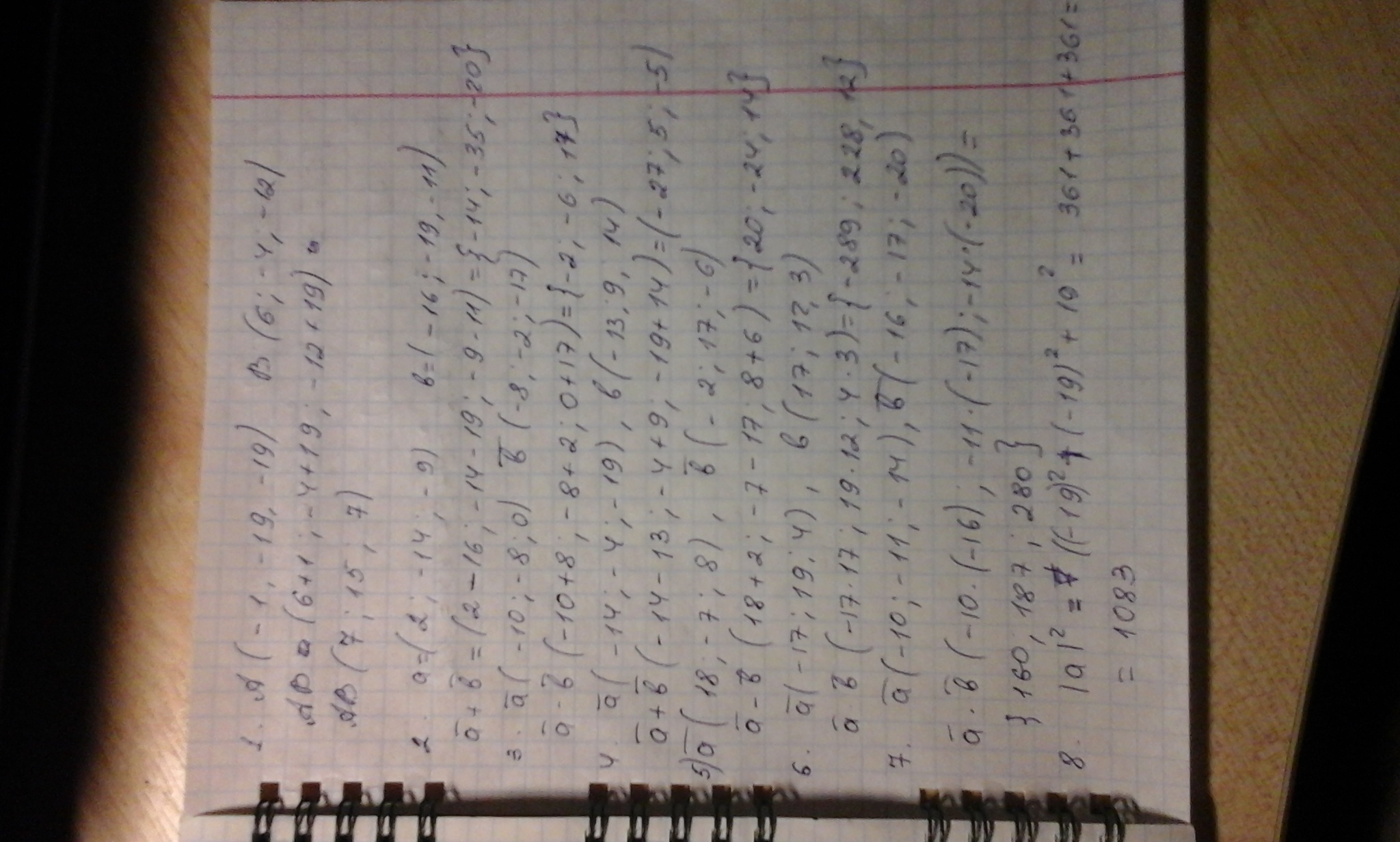 1. Зная координаты точек A(-1, -19, -19) и B(6, -4, -12) найдите значение вектора AB.