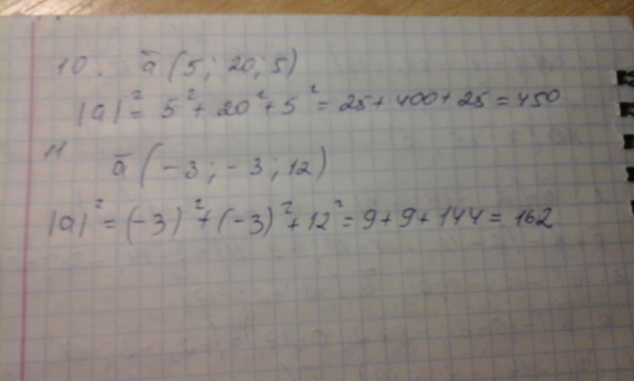 11. Найти квадрат модуля вектора a = {-3; -3; -12}.