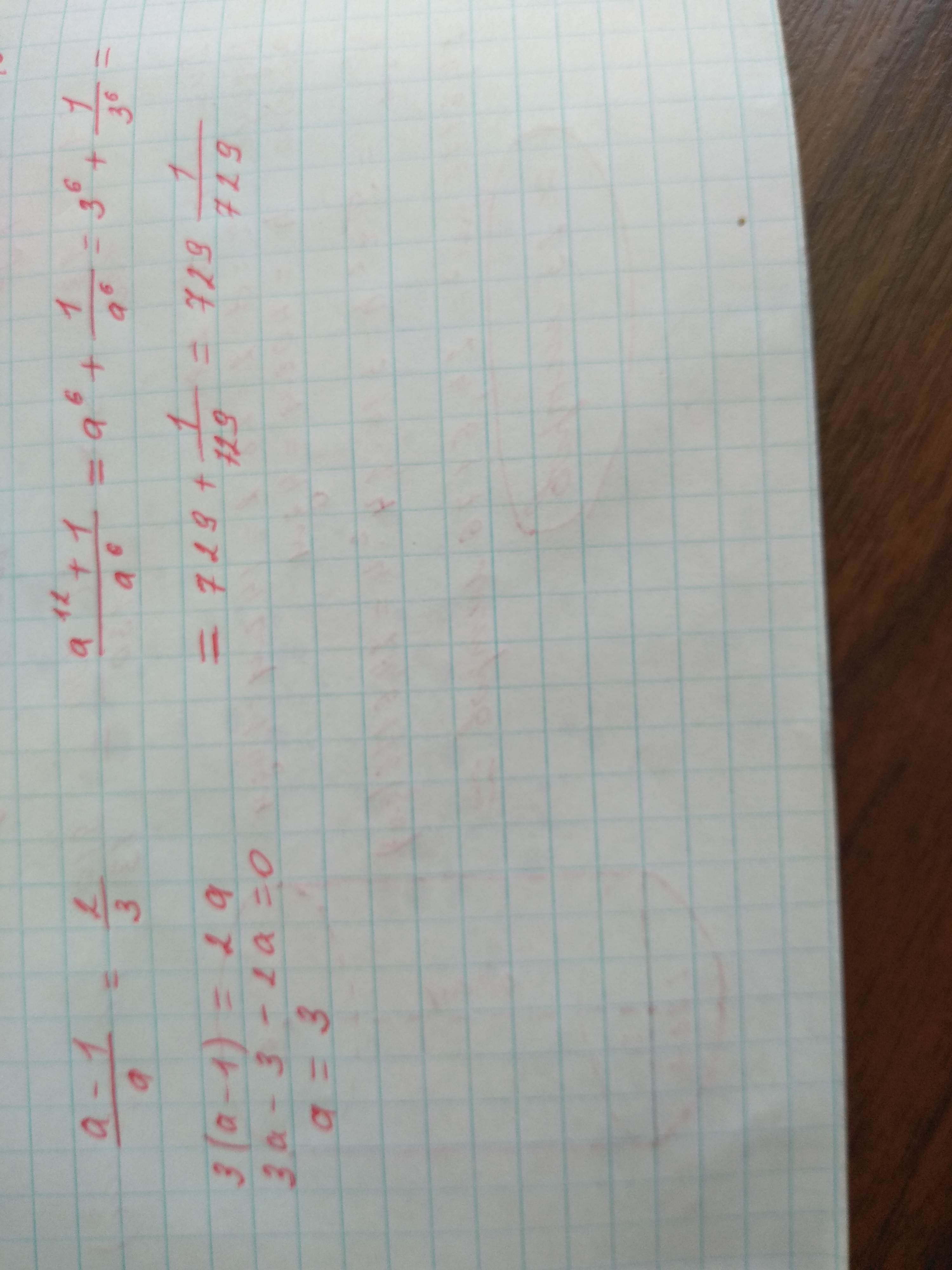 Если там (а-1)/а=3, то ответ верный, но, если а-1/а, то нет. И тогда тоже можно решить, но решение другое!