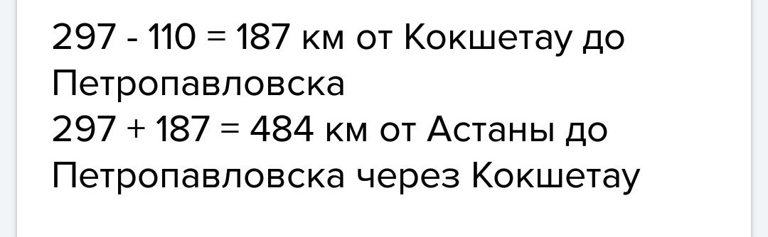 темиржол бойымен Астанадан Кокшетауша дейин 297км, ал Кокшетаудан Петропавлга дейин одан 110км кем.Темиржол бойымен Кокшетау аркылы Астанадан Петропавлга дейин неше км?