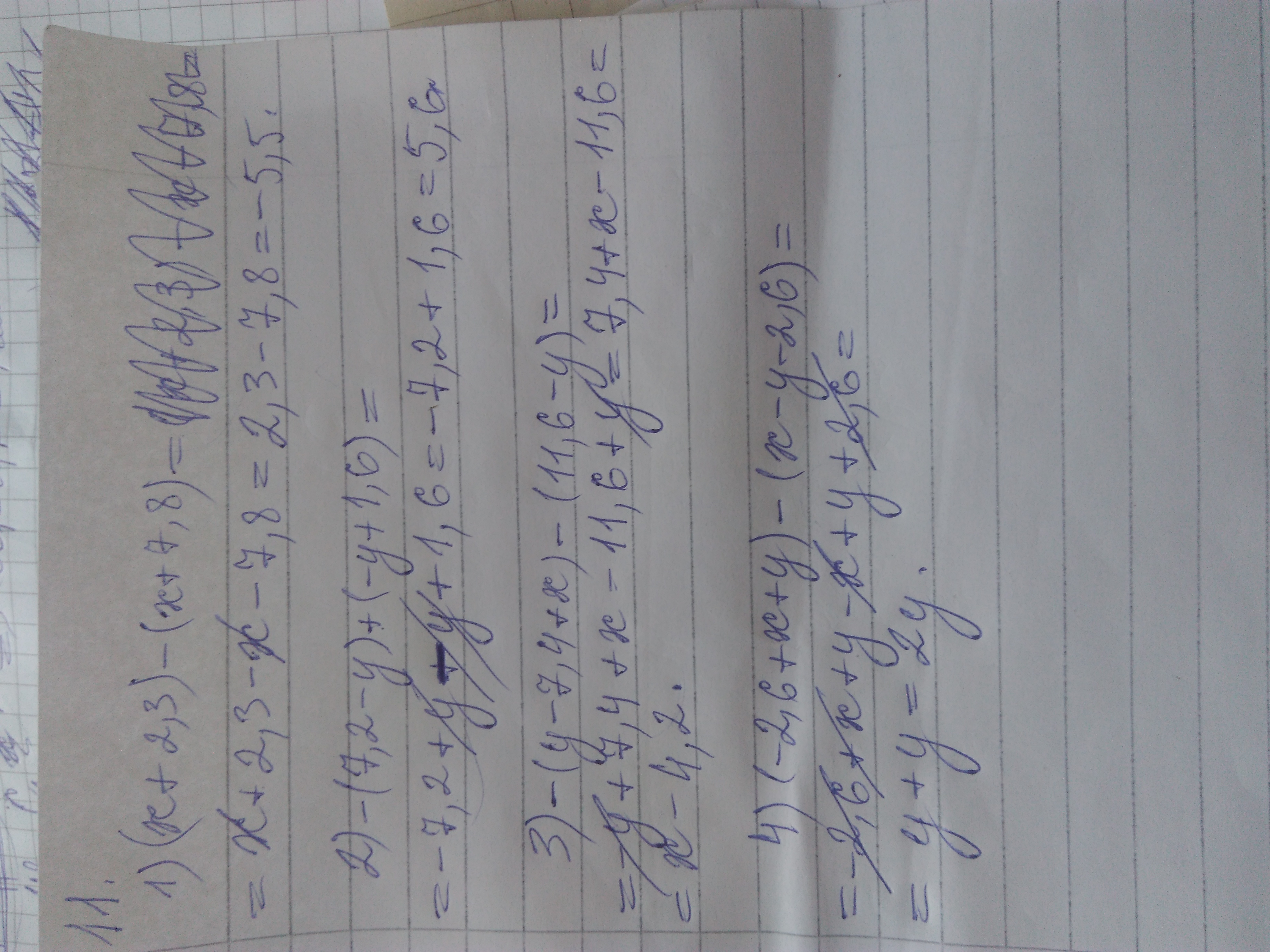 4)(-2,6+х+у)-(х-у-2,6) = -2,6+х+у-х+у+2,6 = 2у