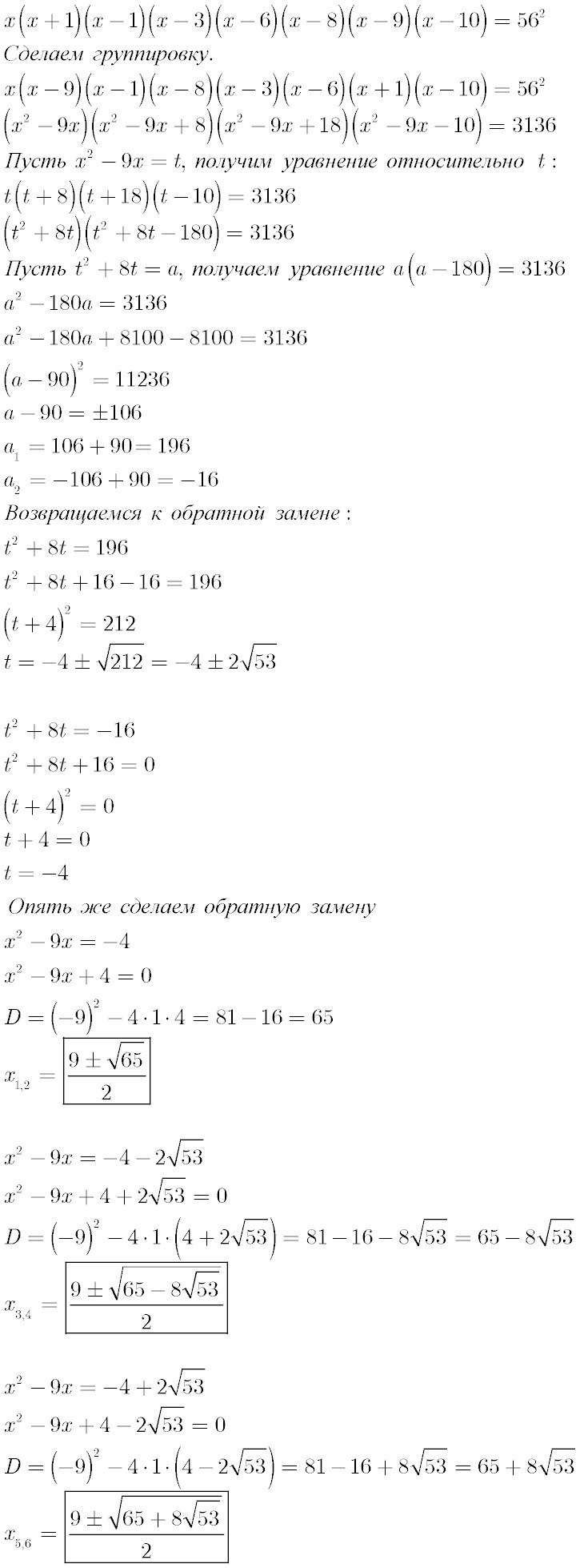 x(x+1)(x-1)(x-3)(x-6)(x-8)(x-9)(x-10)=56²