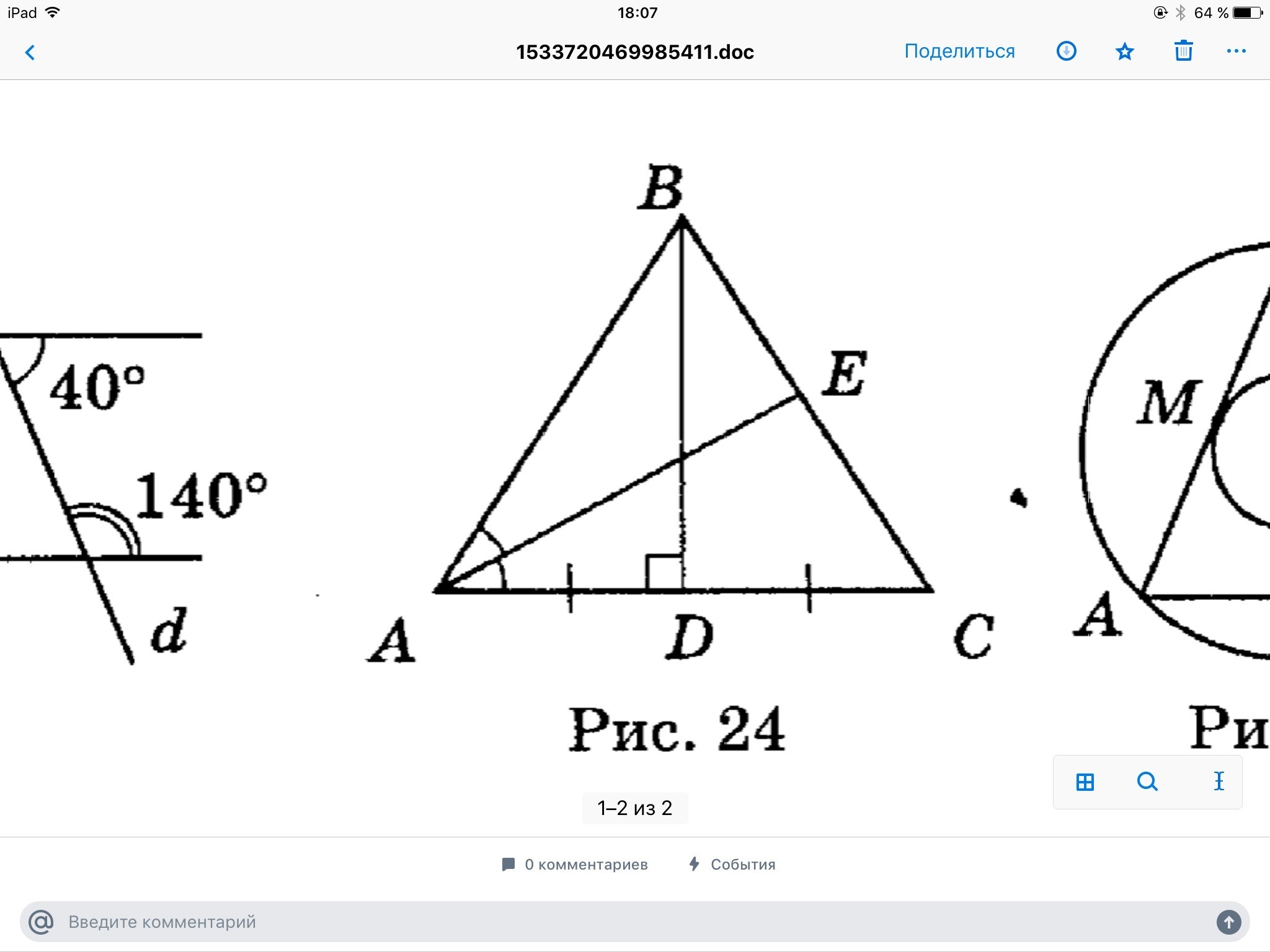 По рисунку 24 найдите углы треугольника ABC если угол AEC равен 87