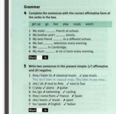 6) She teaches music. She doesn't teach sport.