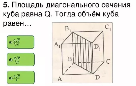 объем куба V= х³ = (✓(Q/✓2))³ =