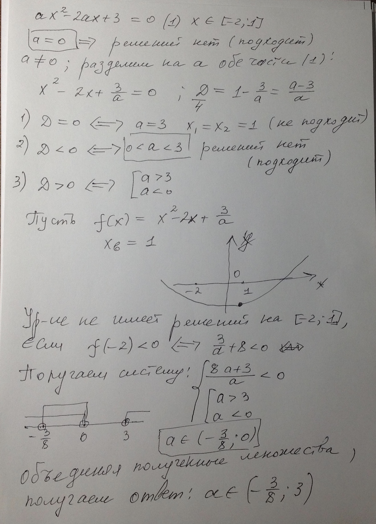 Также при a=0 имеем f(x)=0-0+3=3 ⇒ нет корней.