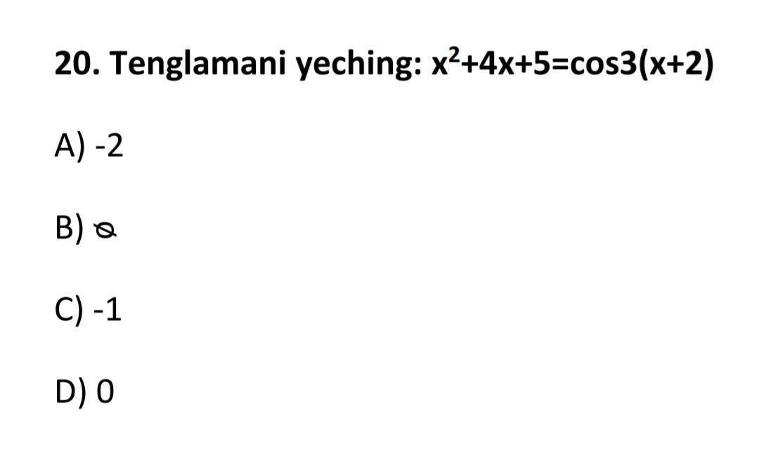 Функция косинуса равна 1 только при аргументе, равном нулю.