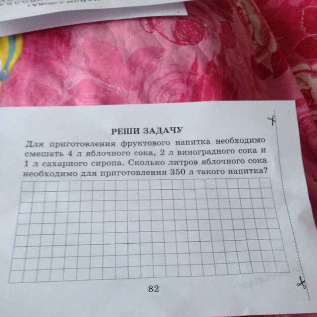 Нам нужно приготовить 350л напитка, что в 350/7=50 раз больше, значит и компонентов нужно взять в 50 раз больше.