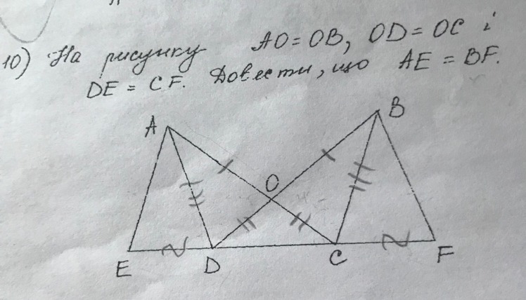 4) △ADE=△BCF(по двум сторонам и углу между ними) следовательно AE=BF(как соответственные элементы в равных треугольниках).