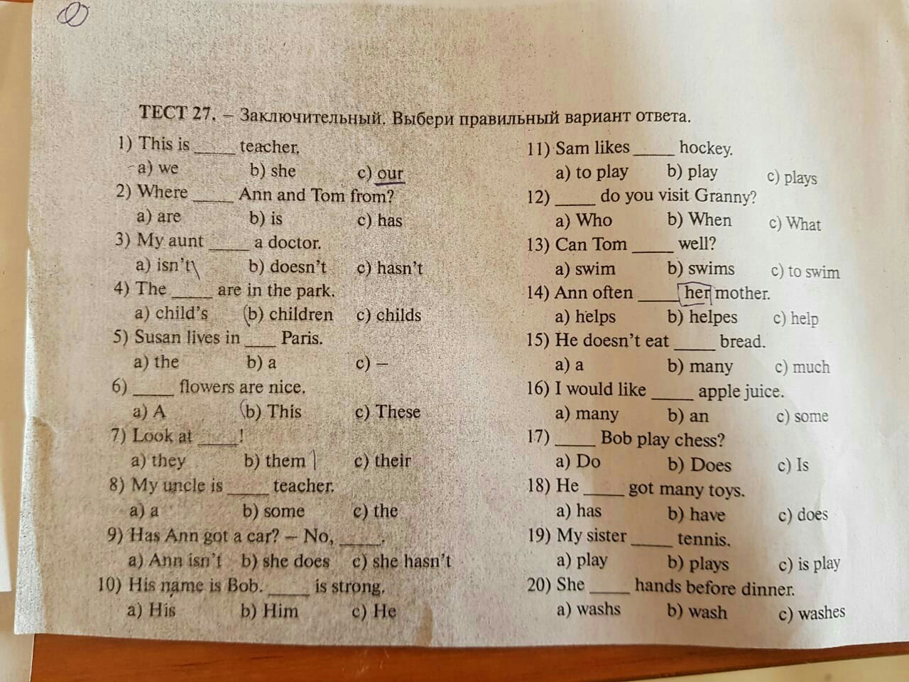 14) Ann often helps her mother.