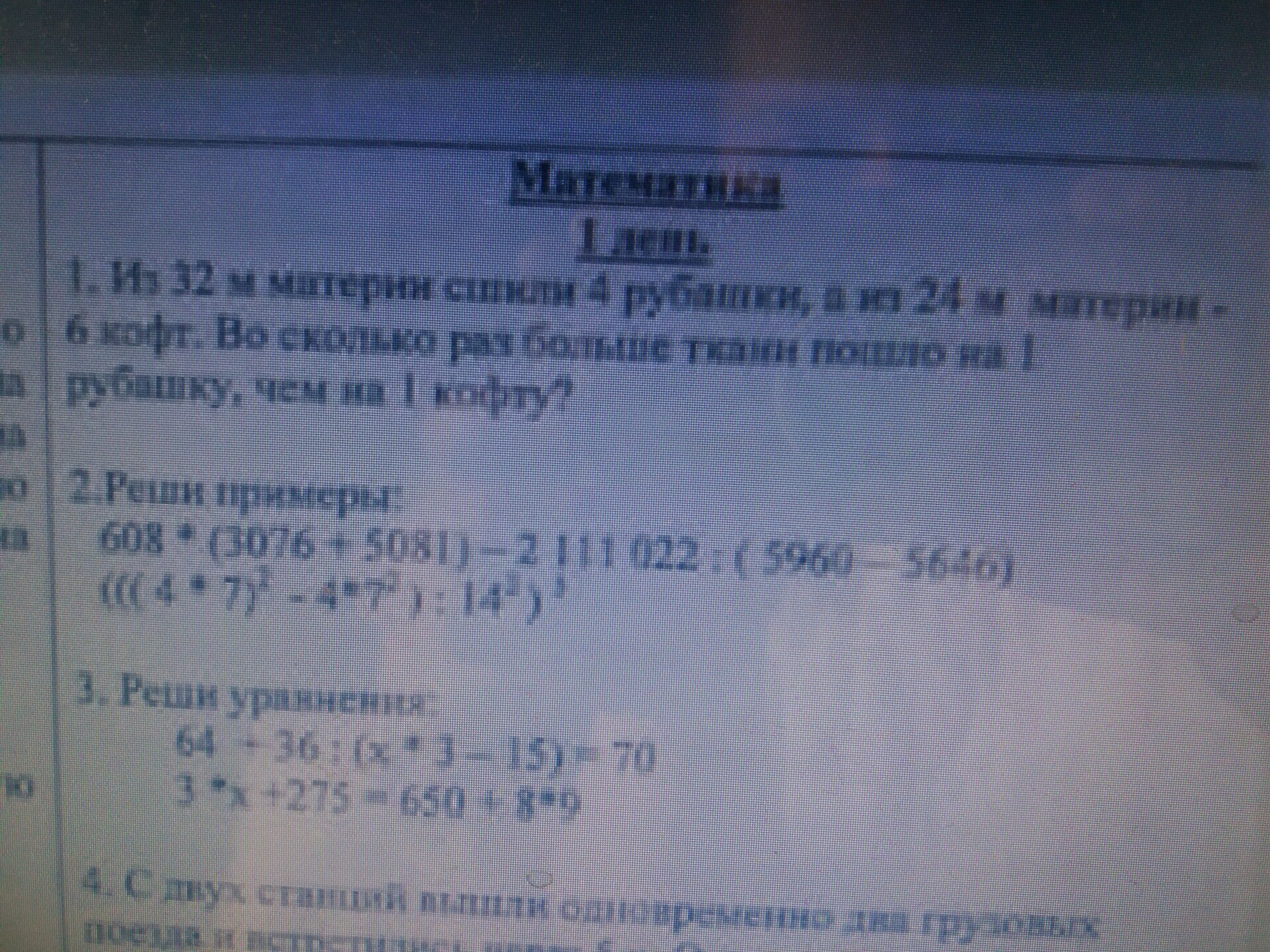 1) 32:4=8 м материи потратили на 1 рубашку.