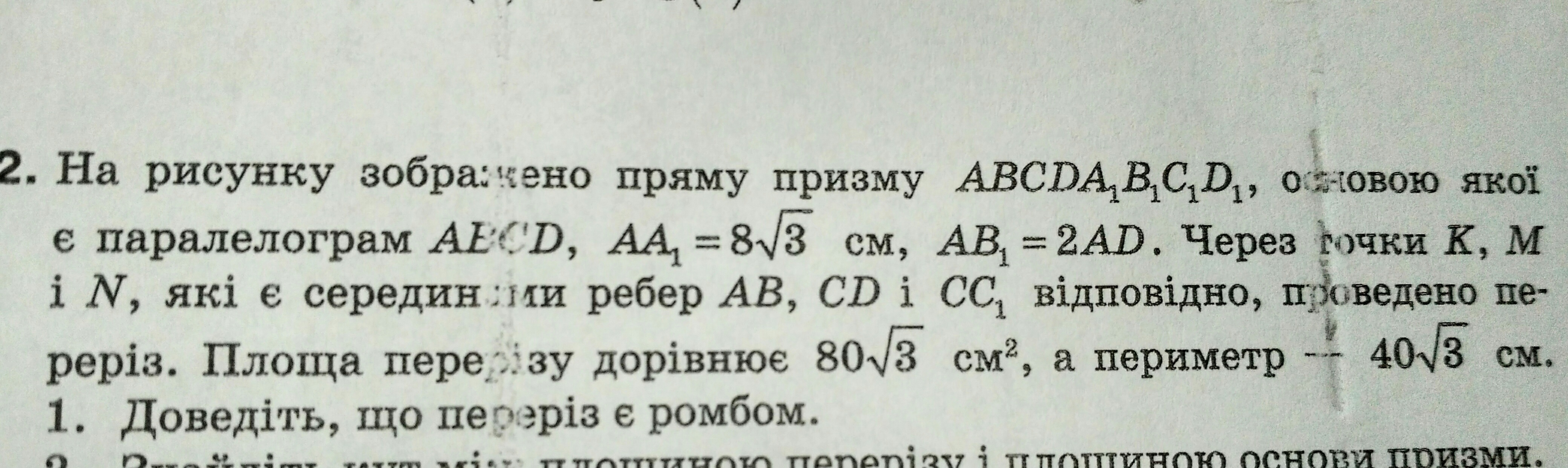 Сечение призмы на рисунке в приложении. Ребра сечения параллельны.