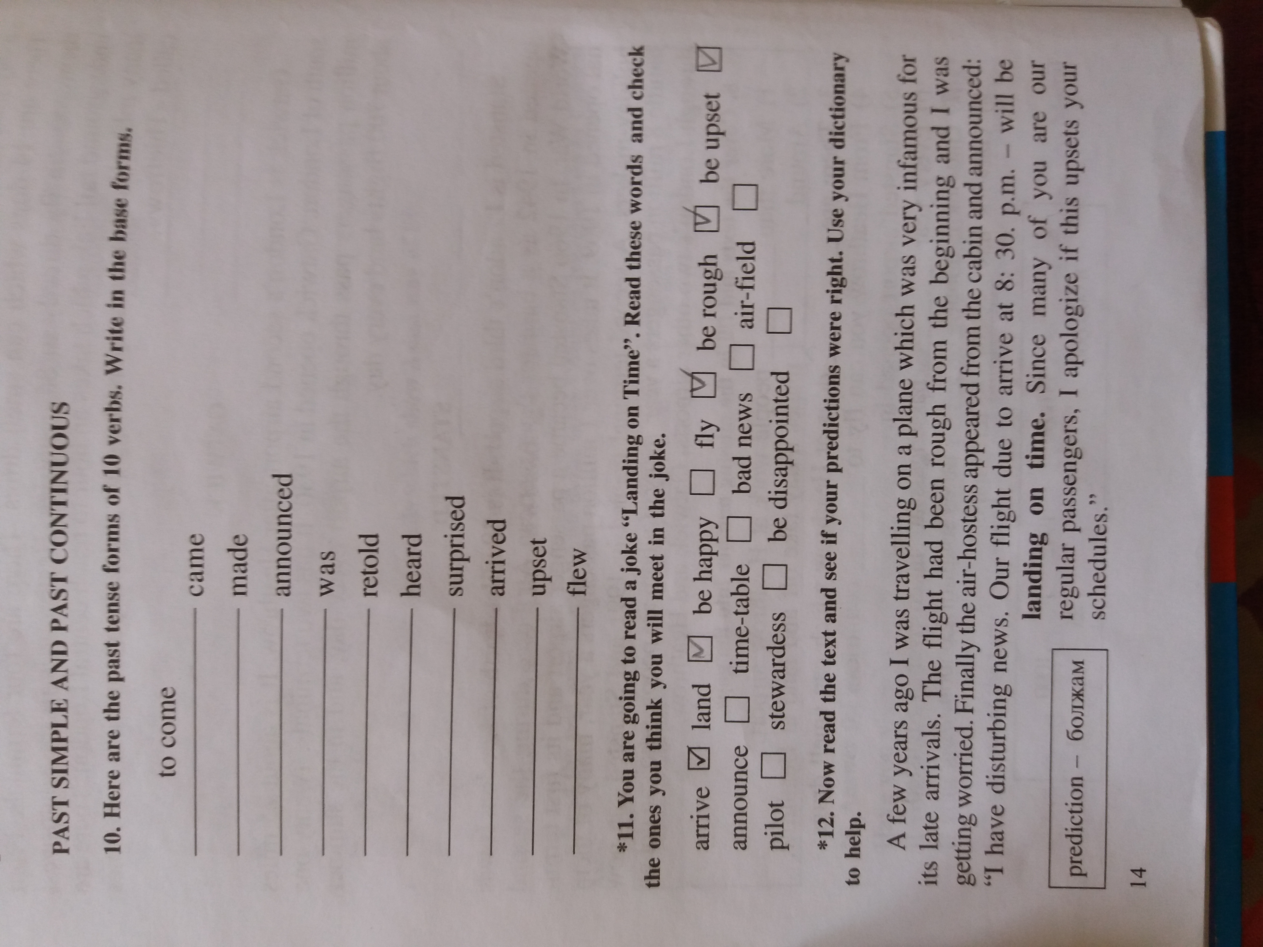 Arrive,land,be rough,be upset,bad news,stewardess,announce.