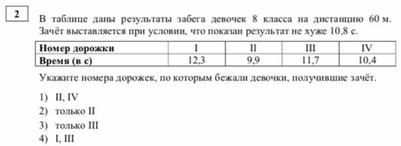 Зачет получили t2 и t4 то есть 2 и 4 дорожки