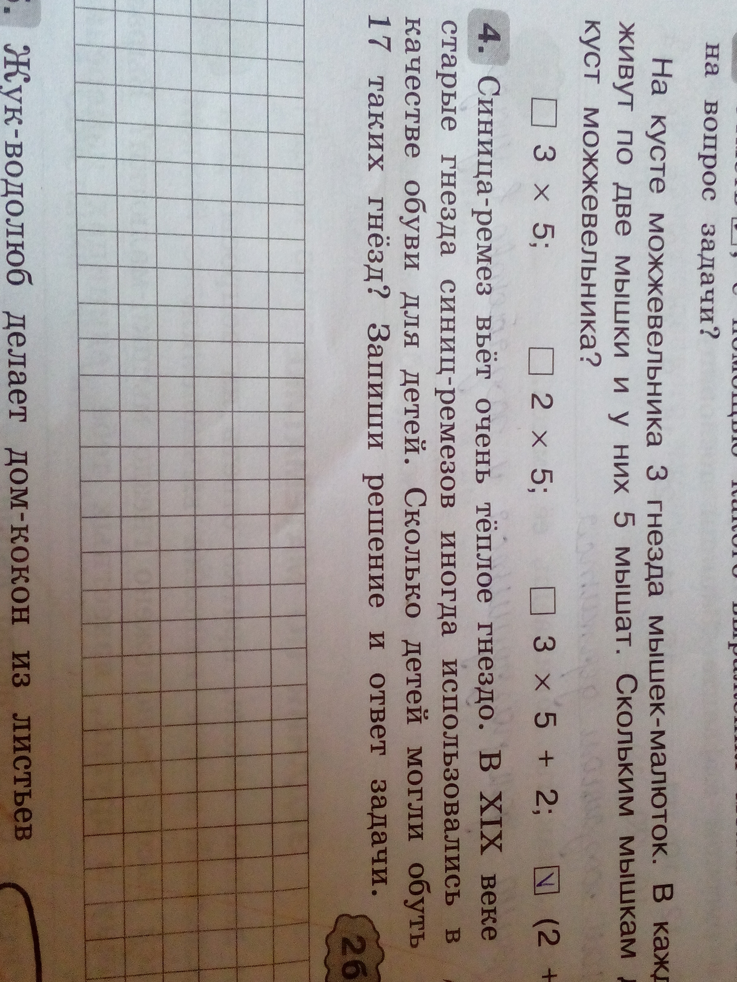 у детей 2 ноги. Учитывая то, что одно гнездо одевается на одну ногу, отсюда следует, что 17:2=8 ( остаток: 1) .