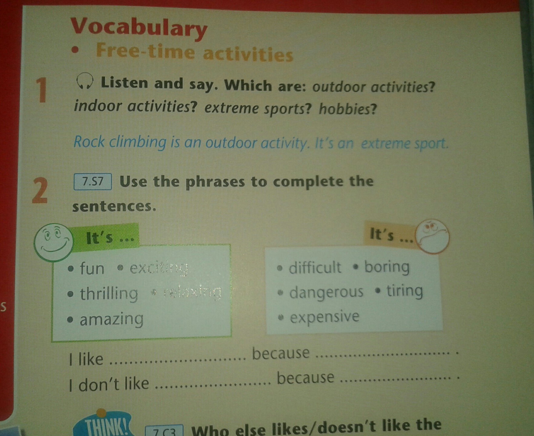 I like to ride a bike because it's fun. I don't like skiing because it's difficult.