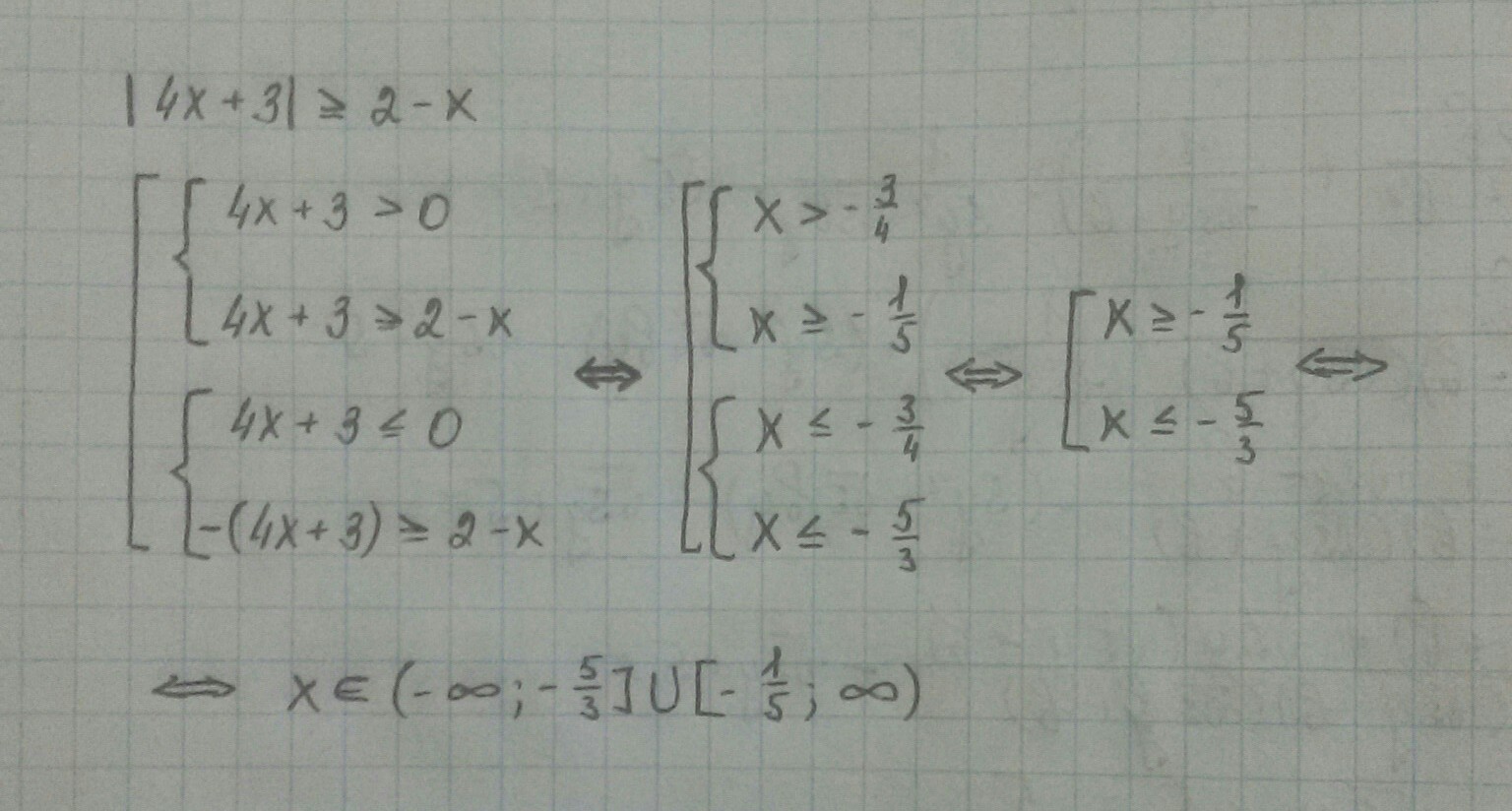Рассматриваешь 2 случая. Когда: 1)x<=-3/4 и 2)x>=-3/4.