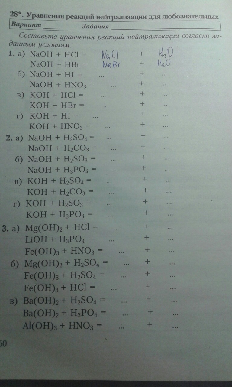 NaOH + HI = NaI + H2O – реакция обмена (йодид натрия + вода)