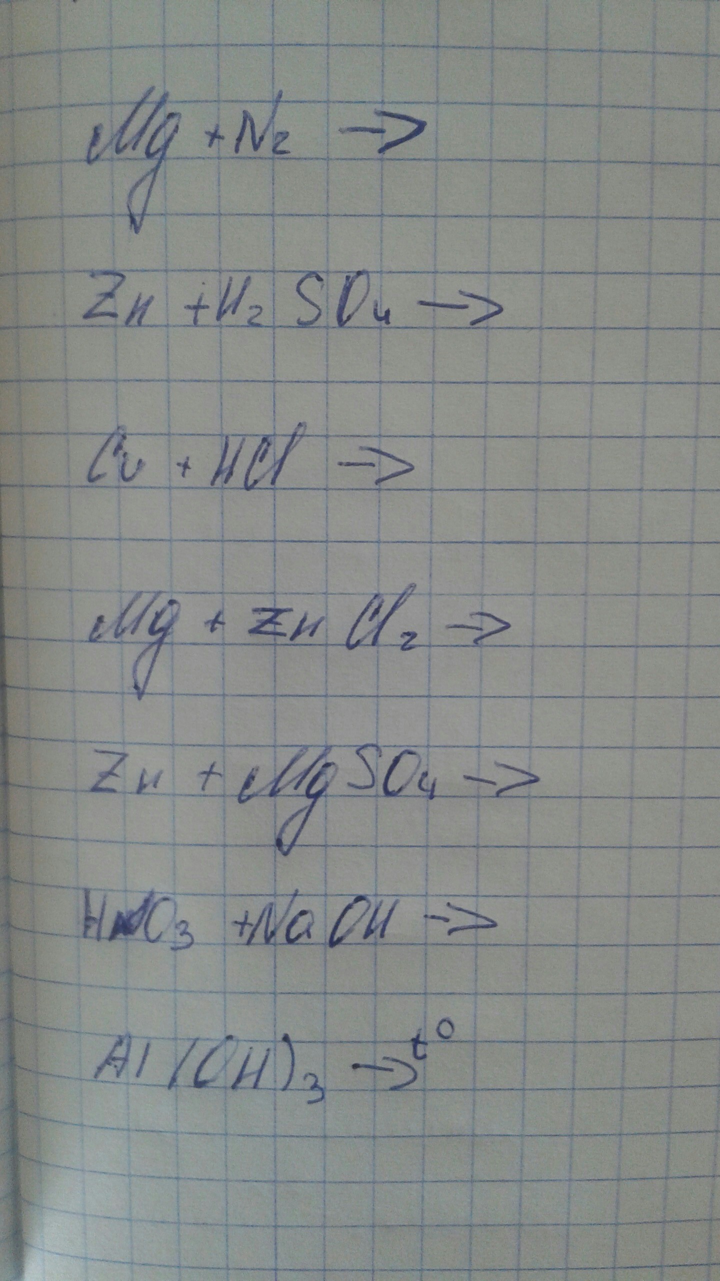 5)Zn+MgSO4=не пойдёт реакция т.к. магний активнее цинка