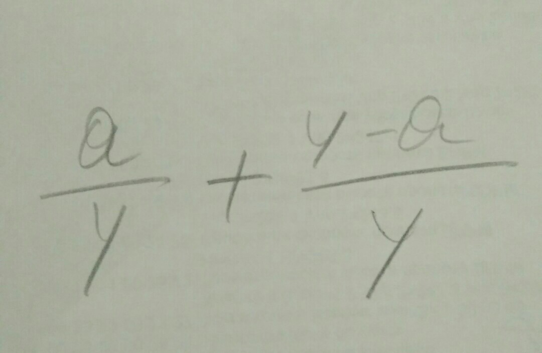 frac{a}{y}+frac{y-a}{y}=frac{a+y-a}{y}=frac{y}{y}=1