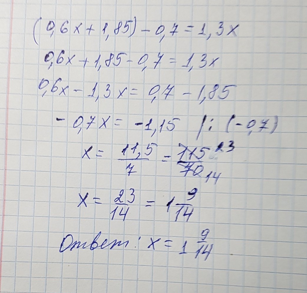 извини,но всё верно.Я сделал и в числителе и в знаменателе целые числа.То есть и числитель и знаменатель умножить на 10.Потом сократил и получил ответ.Успокойся,всё верно.Ты же 11,5 никогда не разделишь на 7.Они не делятся.Надо в долях решить.