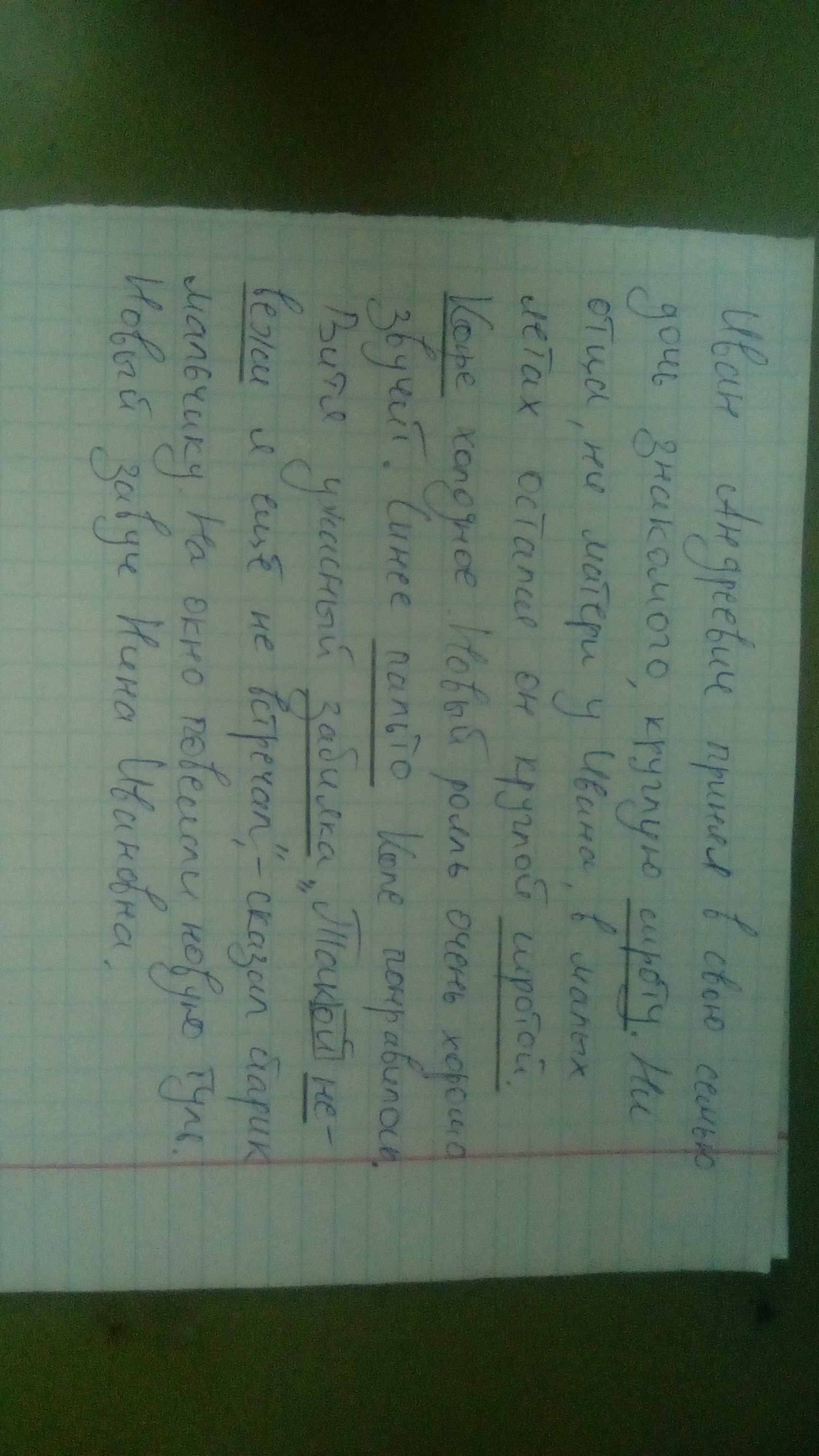 вставь пропущенные буквы и знаки подчеркни имена существительные общего рода Иван Андреевич принял в свою семью дочь знакомого,круглую сироту.Ни отца,ни матери у Ивана-в малых летах остался он круглой сиротой.Кофе холодное.Новая рояль очень хорошо звучит.Синее пальто Коле понравилось.Витя ужасный забияка.Так __невежи я ещёне встречал сказал старик мальчику.На окно повесили новую тюль.Новый завуч Нина Ивановна