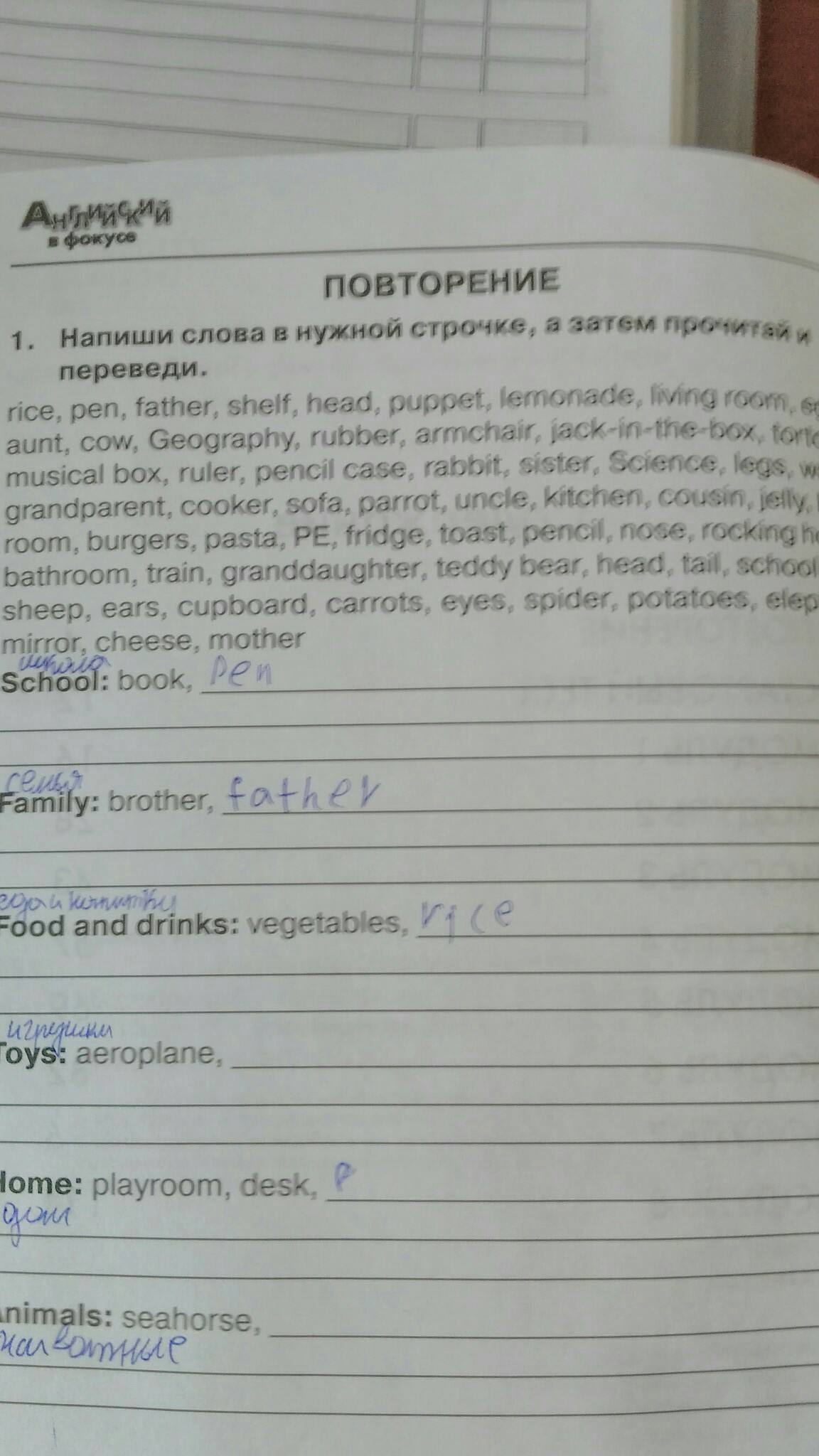 Family:sister(сестра),grandparent(бабушка и дедушка),uncle(дядя),cousin(кузен),granddaughter(внучка),mother(мама),aunt(тётя)