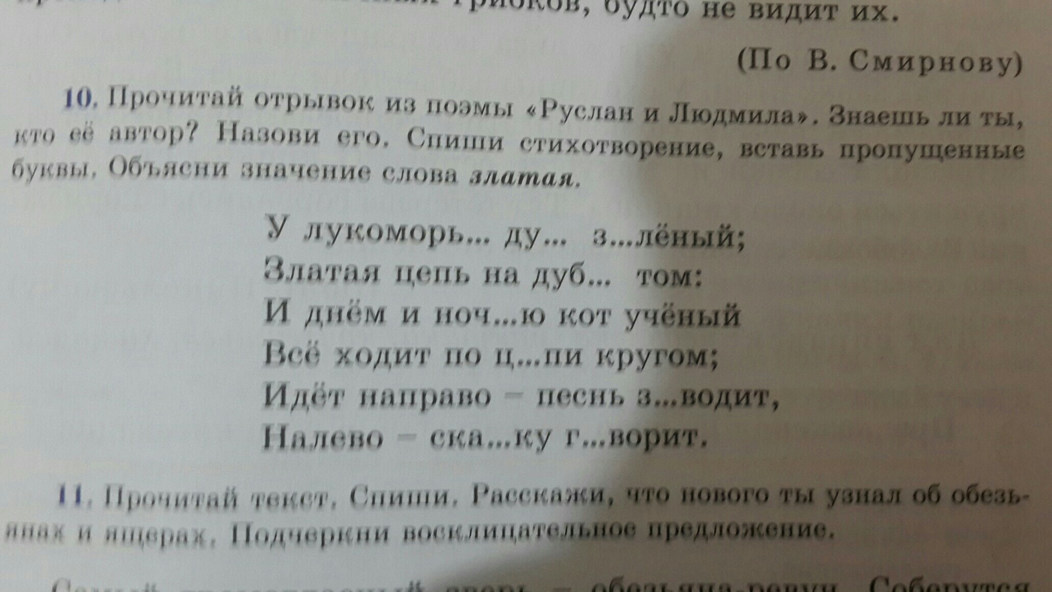 А.С Пушкин, из поэмы Руслан и Людмила ! Златая- золотая !