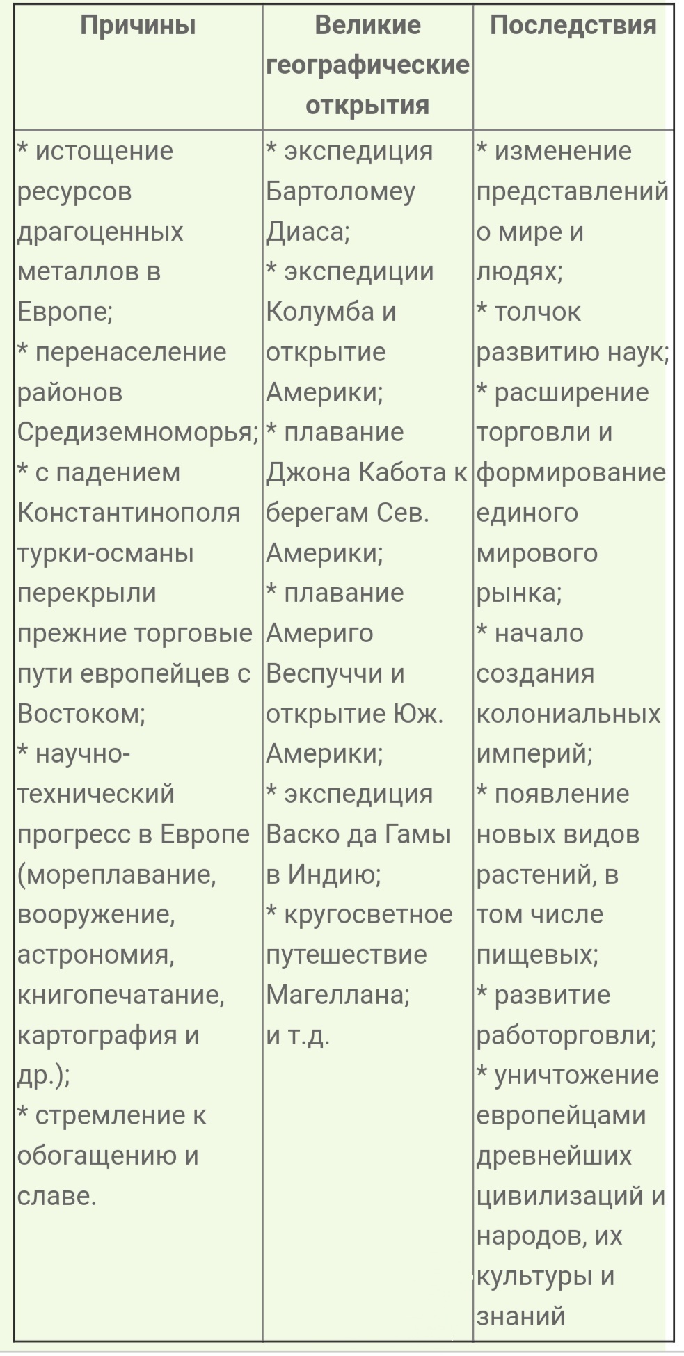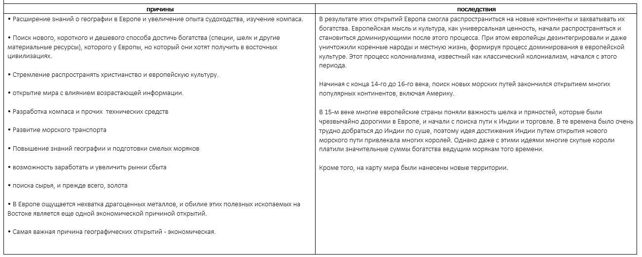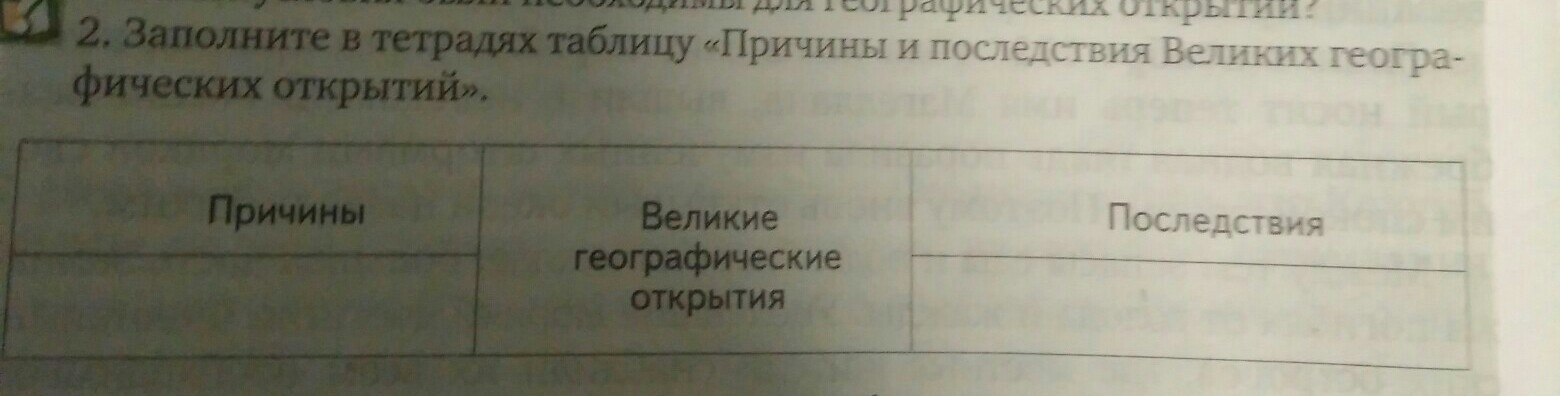 2. заполните в тетрадях таблицу Причины и последствия великих географических открытий