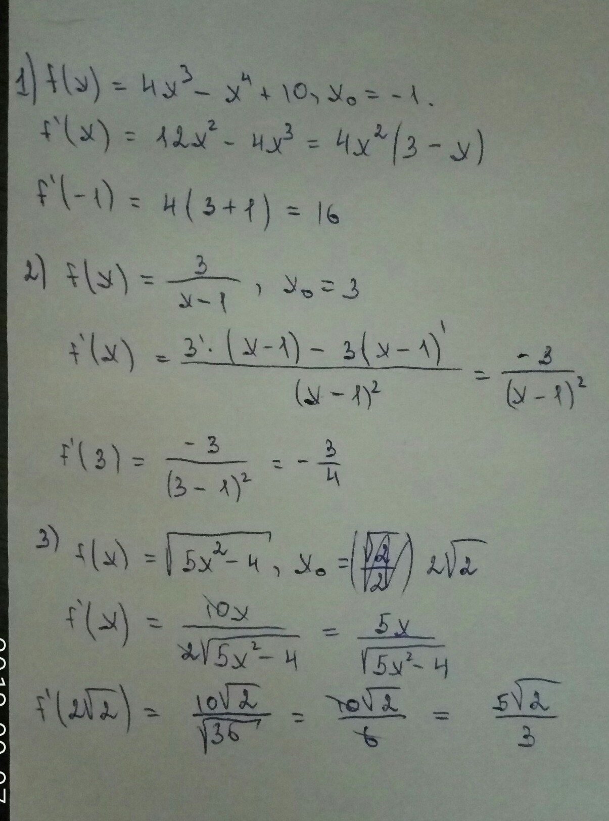 3) f(x) =корень 5x^2 - 4, x0 = 2корень из 2