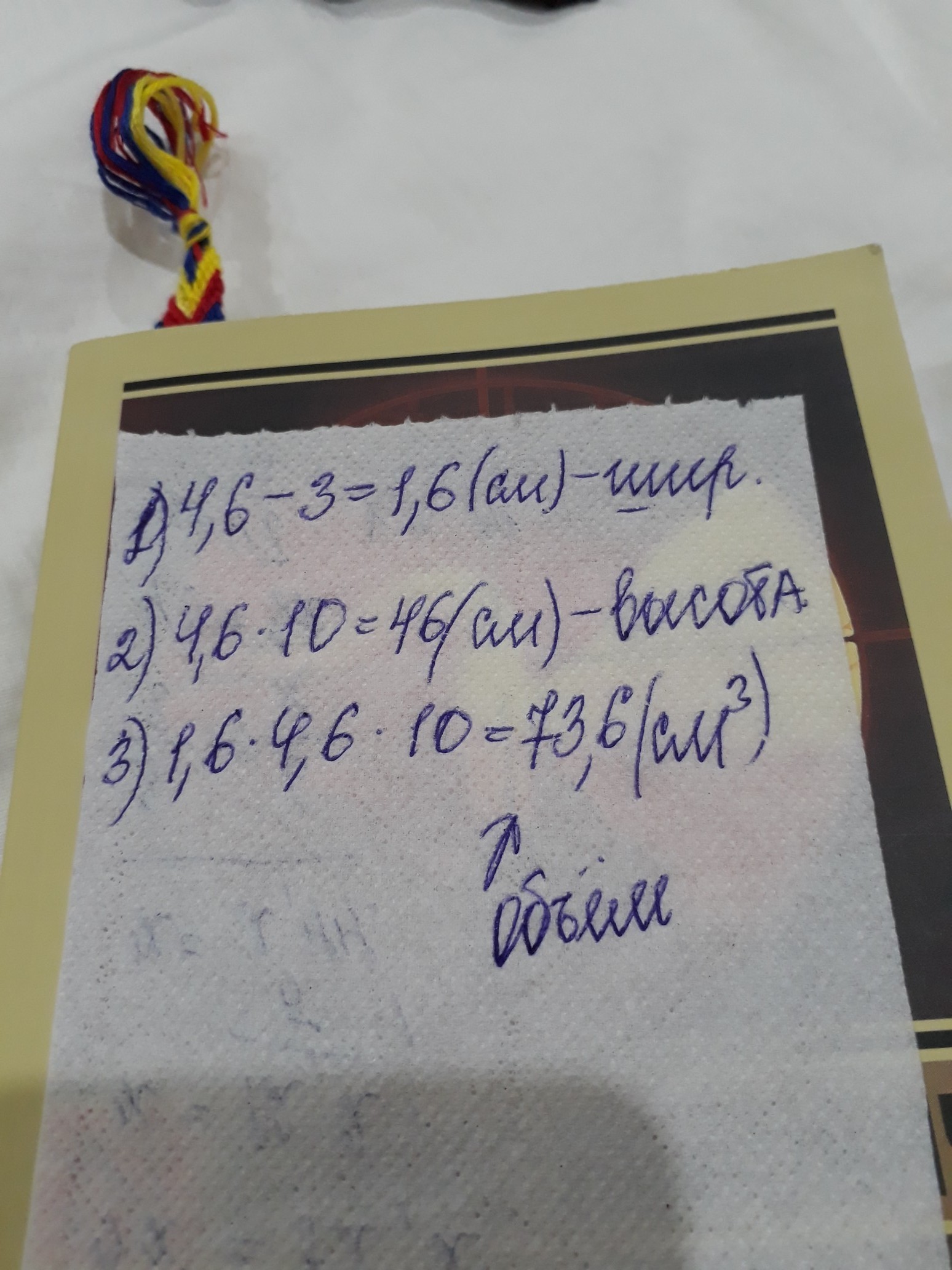 Найди обьём прямоугольного параллелепипида , если его длина 4,6 см, ширина на 3 см меньше длины, а высота в 10 раз больше длины см. ( С условием )