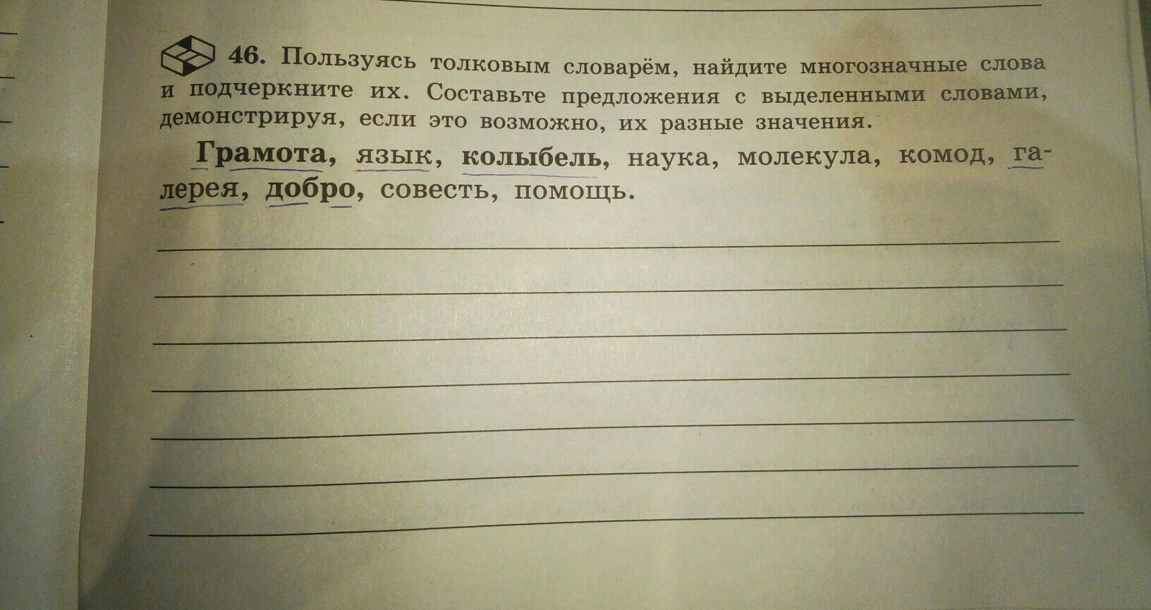 Молекула, комод, совесть, помощь - однозначные слова