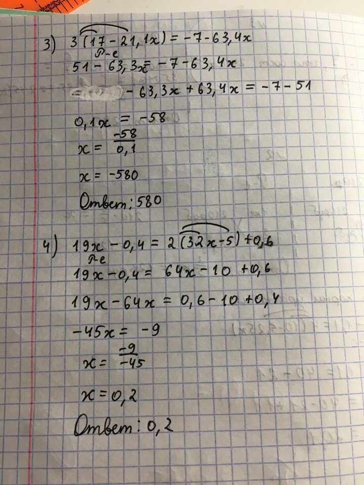 Найдите корни уравнений: 2)20,1х-1,1=4(10-5,25х)