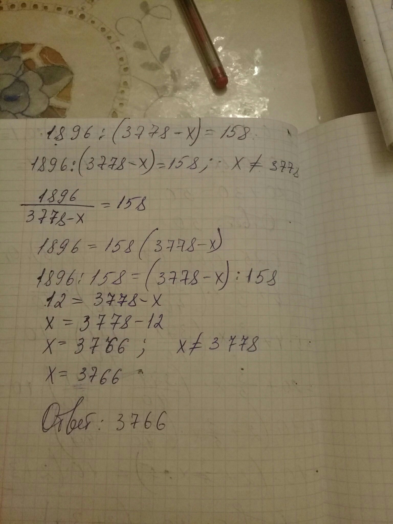 1896 :158 = 3778 - х