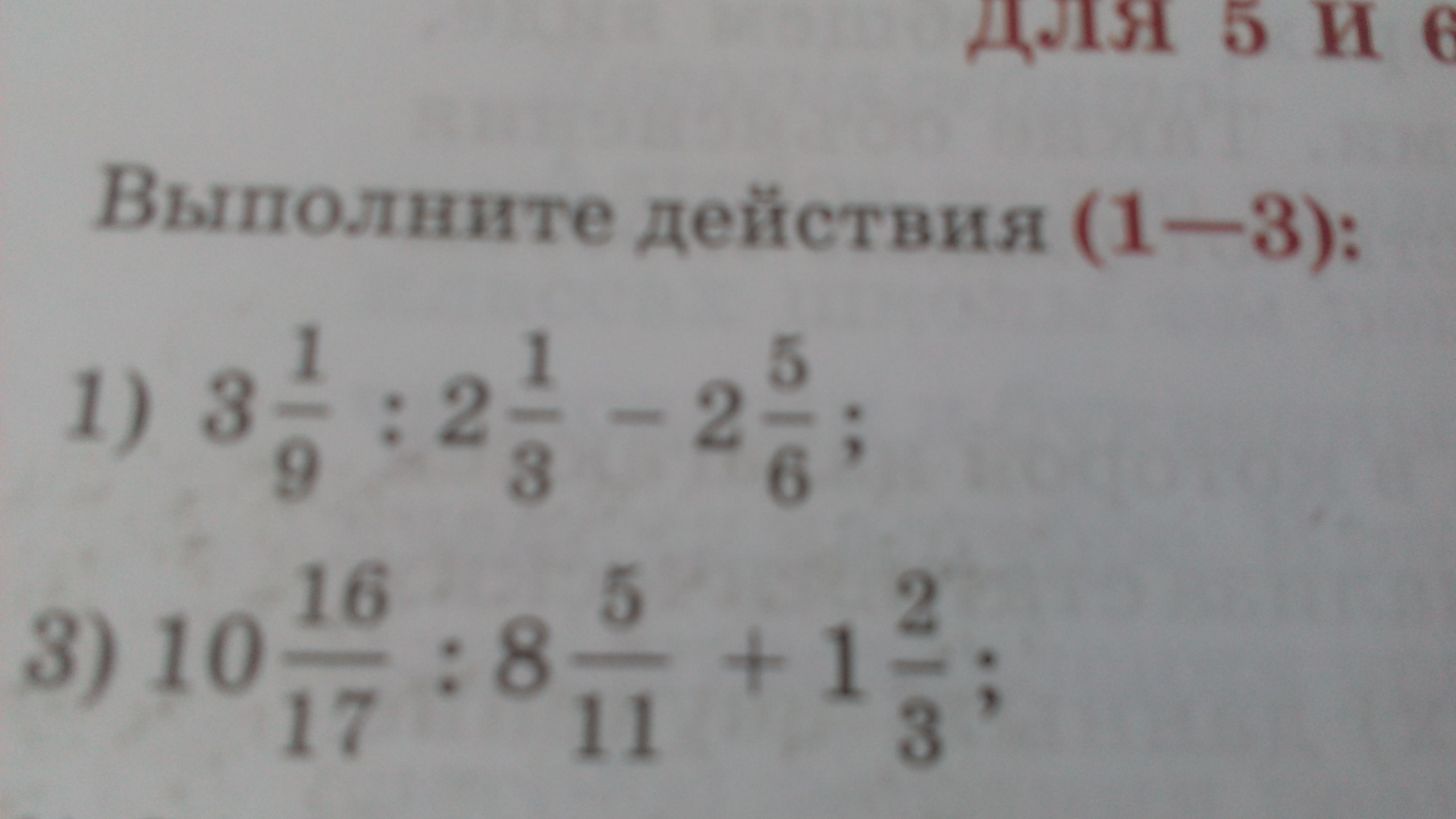 3frac{1}{9}:2frac{1}{3}-2frac{5}{6}=frac{28}{9}:frac{7}{3}-frac{17}{6}=frac{28cdot 3}{9cdot 7}-frac{17}{6}=frac{4}{3}-frac{17}{6}=-frac{9}{6}=-frac{3}{2}=-1,5\\\10frac{16}{17}:8frac{5}{11}+1frac{2}{3}=frac{186}{17}:frac{93}{11}+frac{5}{3}=frac{186cdot 11}{17cdot 93}+frac{5}{3}=frac{2046}{1581}+frac{5}{3}=\\=frac{682}{527}+frac{5}{3}=frac{22cdot 31}{17cdot 31}+frac{5}{3}=frac{22}{17}+frac{5}{3}=frac{66+85}{17cdot 3}=frac{151}{51}=2frac{49}{51}